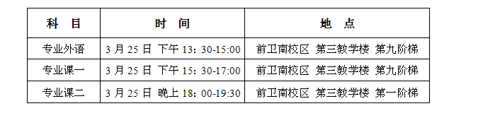 1. 专业课笔试和专业外语笔试时间、考场