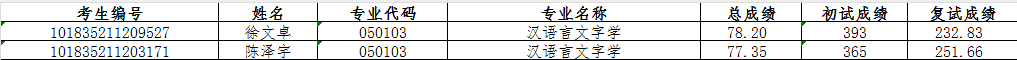 1. 汉语言文字学:徐文卓、陈泽宇