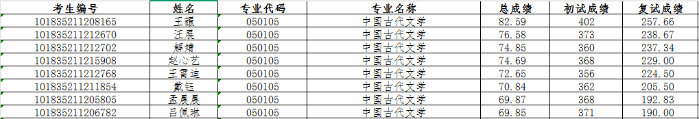 2. 中国古代文学:王譞、汪展、解婧、赵心艺、王霄迪、戴钰、孟晨晨、吕佩琳
